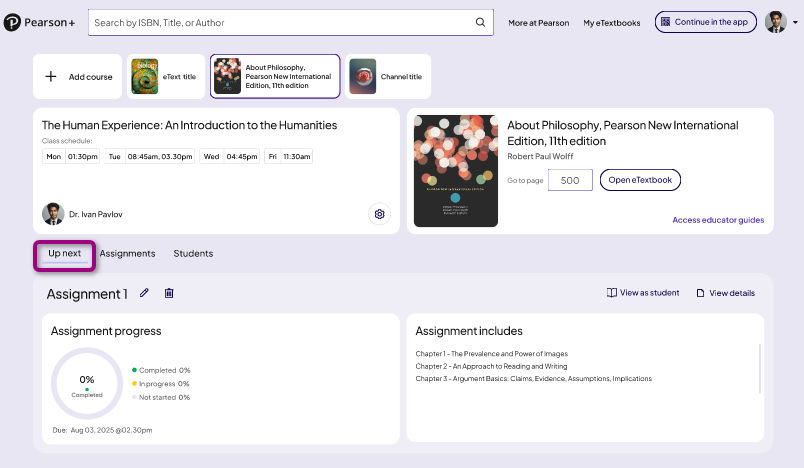 New feature: If your eTextbook has instructor-led assign and guide tools, you can use the dashboard to view assignment details and track student progress.