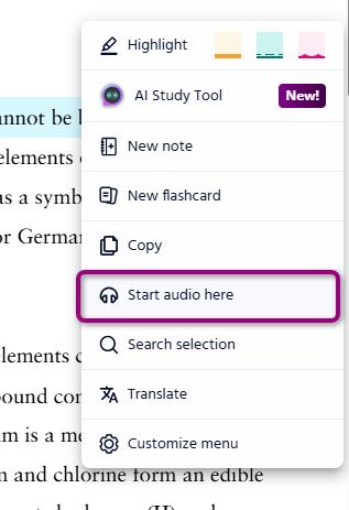 at the bottom of the page. You need internet access to use the audiobook in the Pearson+ app. Also in the app, you might need to tap a book page for the eTextbook menu to appear.