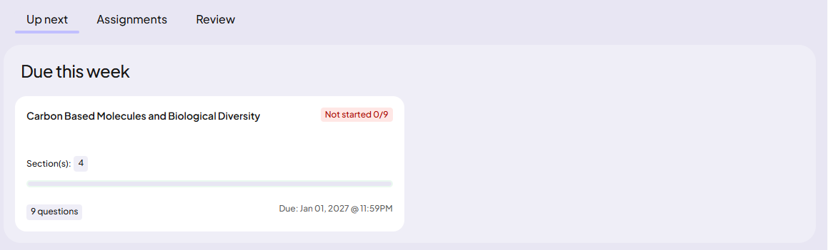 In some courses, you might do gradable reading assignments. Use the dashboard to view details, open assignments, and track your progress.
